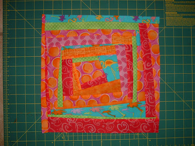 One of the things that each "challengee" is to do is to choose a color combo from the three that she offered and make a Log Cabinish type 12" (finished) block that will be part of some quilts that will be made and donated to charity.